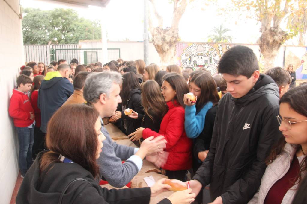 Esta foto describe a la perfección la «M» Maristas realizada por los alumnos. Unos minutos después se fueron a disfrutar de unas monas con chocolate.